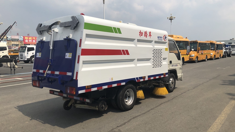 3、采用"中置四盤刷+后置吸嘴"的結(jié)構(gòu)布置,便于清掃裝置與吸嘴的調(diào)整和維護(hù),轉(zhuǎn)場時整車通過性好。