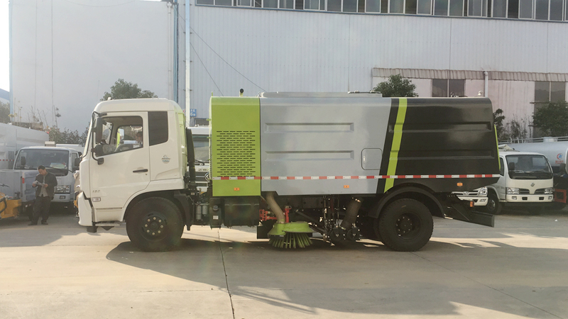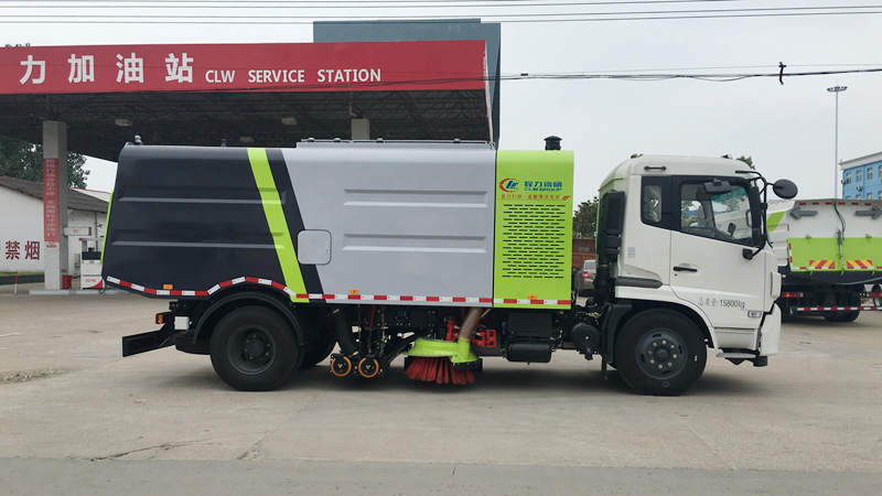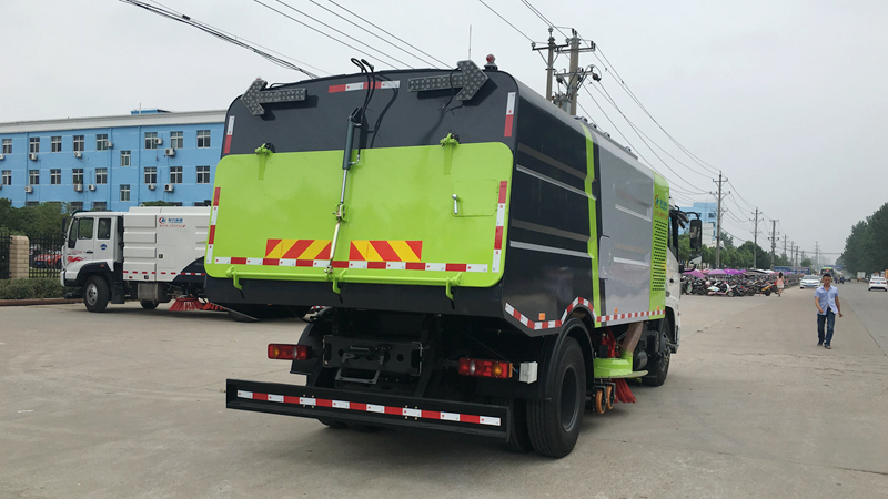 1、采用吸掃結(jié)合的方式收集垃圾,濕式除塵、電液控制,液壓傾翻卸料的作業(yè)方式對路面進行清掃作業(yè)。