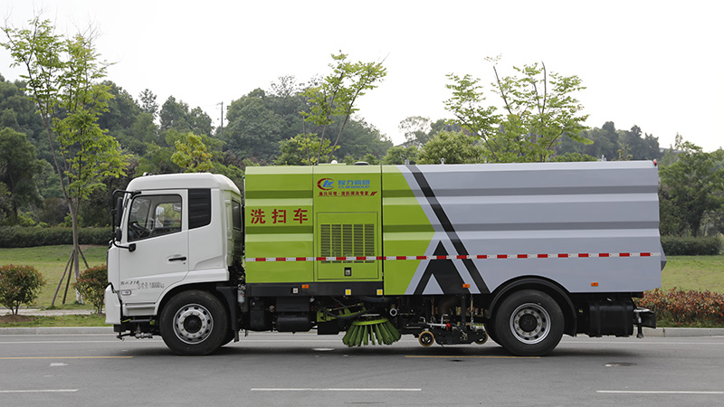 3)采用先進的智能化一鍵控制技術,全部作業(yè)均在駕駛室內(nèi)完成,作業(yè)時,只需選定作業(yè)模式后,各作業(yè)機構的啟動與關停由程序自動控制。具有全洗掃作業(yè)、左洗掃作業(yè)、右洗掃作業(yè)、全掃路作業(yè)、左掃路作業(yè)、右掃路作業(yè)、全吸作業(yè)、左洗作業(yè)和右洗作業(yè)等9種作業(yè)模式可選。